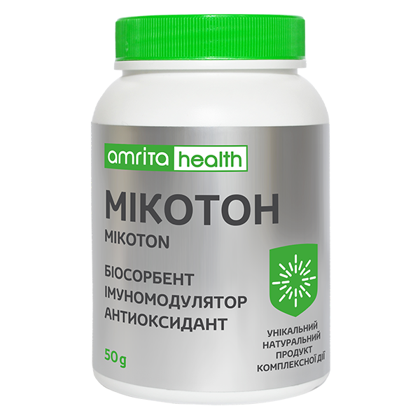 МІКОТОН — один із найсильніших біосорбентів. Він ефективно видаляє токсини, що потрапляють в організм із водою й їжею, зокрема важкі метали, радіонукліди та шлаки, що накопичуються в разі порушень роботи печінки, нирок і шлунково-кишкового тракту, водночас він не порушує мінеральний обмін;